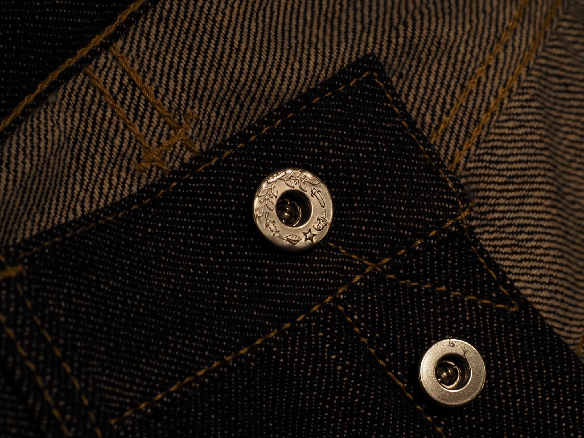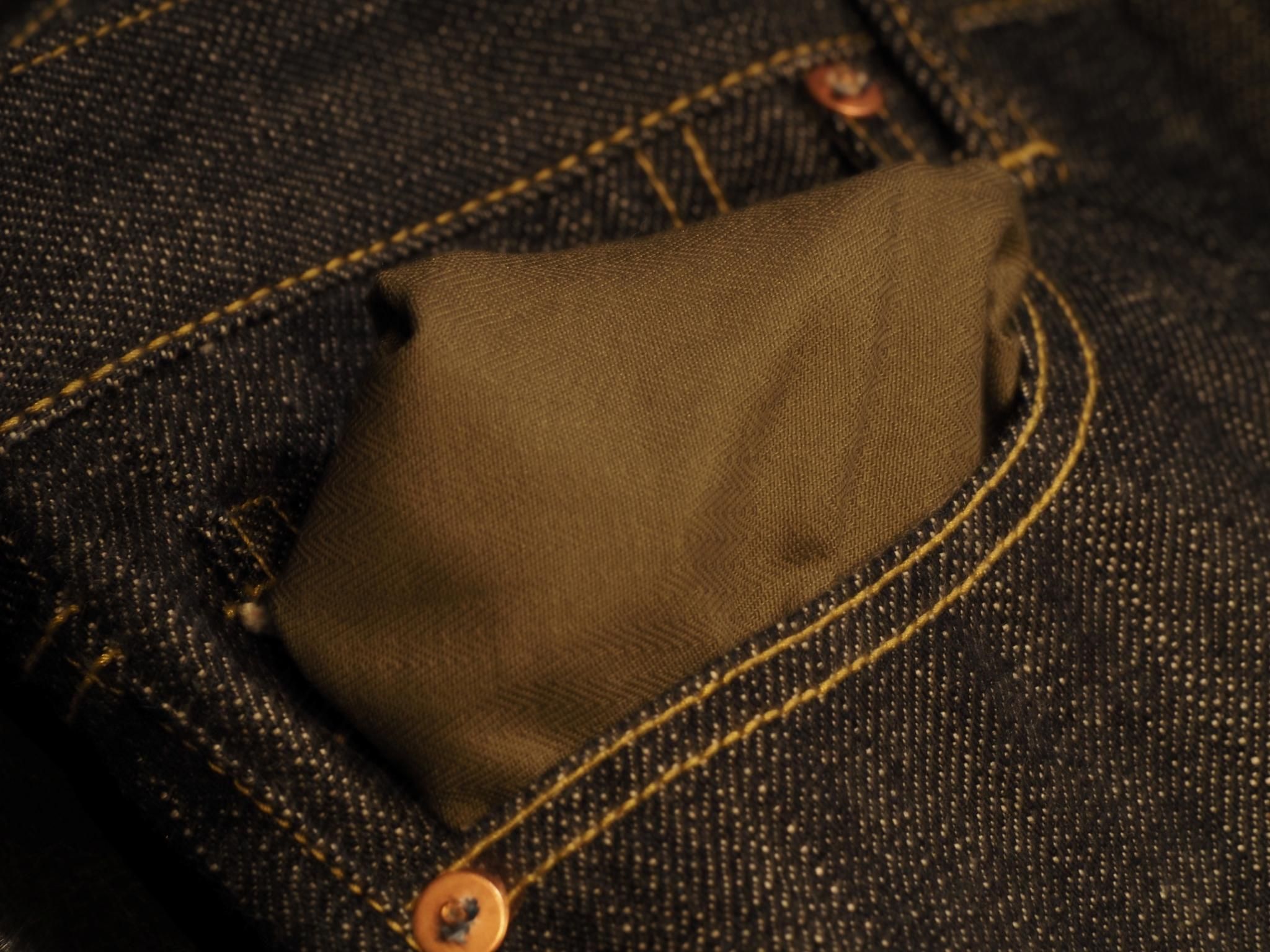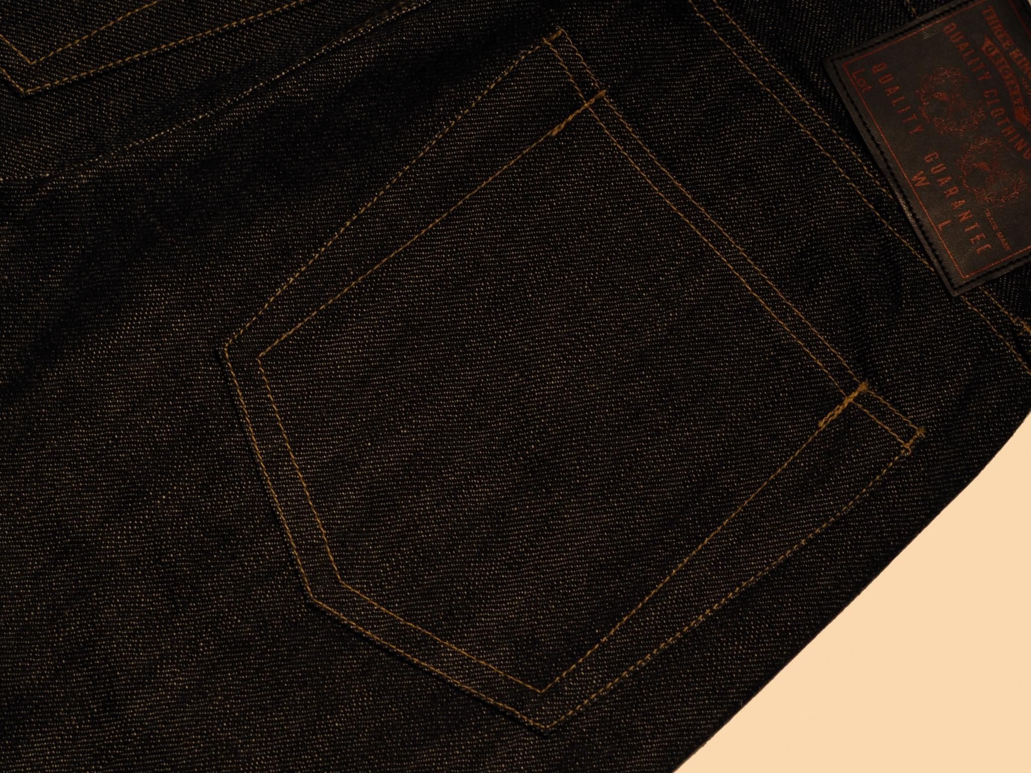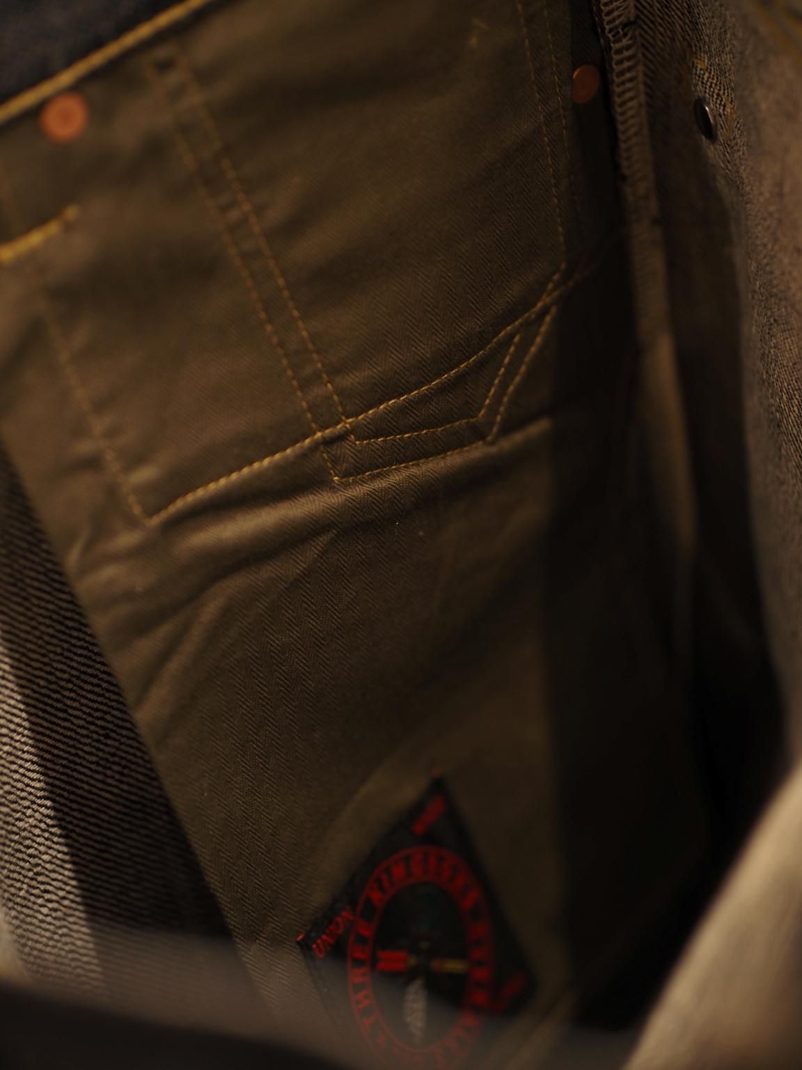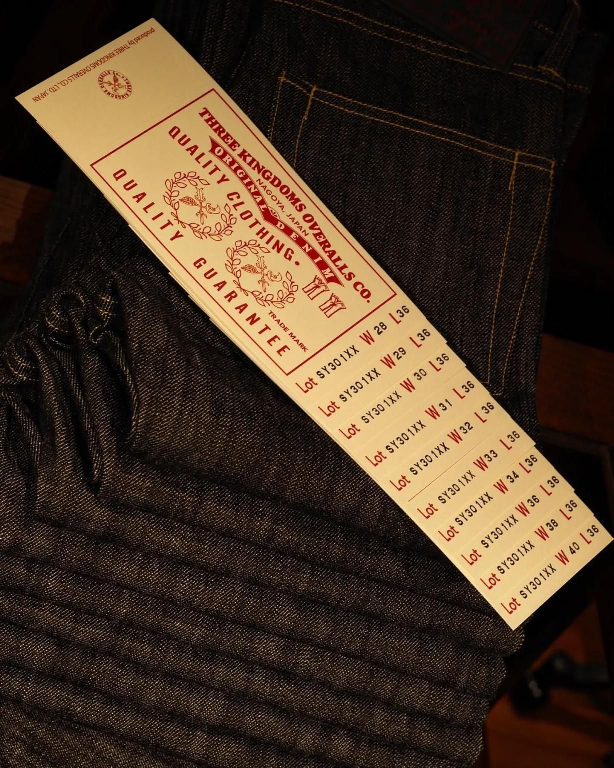 1940年代第二次世界大戦期のデニムパンツをモチーフに製作しております。 生地について 二年に渡たり、オリジナルムラ糸から製作したTHREE KINGDOMS OVERALLSのオリジナル13.5oz天然藍染セルビッチ大戦デニムを使用しています。 ムラ形状もピッチも不均一なオリジナルムラ糸を製作し、現存台数が少なくなった力織機を用い拘りのテンションで織りあげ、大戦当時の生地の独特な強いムラ感を再現しています。 THREE KINGDOMS OVERALLS 最も拘りの天然藍ロープ染めで、ムラ糸の芯を最大限に残しながら、限界の回数まで染め、大戦当時の生地の深みを再現しています。 付属品について 月桂樹ボタンは大戦モデルの象徴であり、今回はTHREE KINGDOMS OVERALLS ロゴ入りオリジナル月桂樹鉄ボタンとロゴなし鉄ドーナツボタンを製作し、トップボタンとフライ部分に使用し、大戦のディテールを再現しています。 大戦中、各種資源が不足し、銅などの使用制限が色々出ており、バックステッチの廃止、スレーキの残布使い、刻印なしの銅メッキ鉄リベット、コインポケットにリベット打ち廃止、クロッチリベット打ち廃止に加え、隠しリベットもオリジナルで製作、ドーム型の銅メッキなし鉄リベットを使用し、大戦当時のディテールを忠実に踏襲しています。 革パッチはイタリア産の個性豊かなフル植物タンニン鞣し革マヤショルダーを使用しており、経年変化が非常に深い革で、デニムの色落ちと共に育てていけます。 シルエットについて 当時の大戦パンツのWWIIクラシックストレートシルエットを最大限に反映した上で、大戦パンツ独特のワイルドさを保ちながら、丁寧に調整、グレーディングを行いました。 縫製について 大戦中、スピード重視、人員不足の要因で、当時の縫製はとても荒く、ステッチが歪んだり、曲がったり、パンクしたり、パーツの縫い合わせがずれたり、位置が合っていなかったり、さまざまな現象が起こりました。今となっては逆に珍しく、謎が多く、あの時代独特の産物となり、デニムコレクター中でとても人気なモデルとなります。 大戦中の背景を参考にしながら、現代のニーズとクオリティのことも考慮しながら、当時の縫製を一部マイルドに採用しております。マイルドな左右不対称のバックポケット、長めの縫い返し、二重縫いなどの仕様を踏襲しています。ステッチは最も大戦らしいオールビンテージイエローステッチ仕上げとしています。 Details 1.THREE KINGDOMS OVERALLS オリジナル天然藍染(NATURAL INDIGO)13.5oz 大戦セルビッチデニム 旧式力織機(G型)ローテンション織り 生機 岡山製造 2.オリジナル大戦ムラ糸使用 3.100% U.S.コットン使用 4.100%天然藍(NATURAL INDIGO)ロープ染色 最濃染 芯白 5.オリジナル大戦セルビッチ(フェードレッド色) 6.1940s大戦期デニムパンツ WWIIクラシックストレートシルエット 7.ボタンフライ仕様 8.THREE KINGDOMS OVERALLS ロゴ入りオリジナル鉄製月桂樹トップボタン ツープロング仕様 9.オリジナル鉄製ドーナツボタン ツープロング仕様 10.オリジナル銅メッキ鉄リベット 11.オリジナルドーム型鉄隠しリベット 12.オリジナル大戦革パッチ マヤショルダー 黒紺 牛革 13.コインポケットリベットなし仕様 セルビッチ使用 14.クロッチリベットなし仕様 15.左右不対称バックポケット バックステッチなし ポケット口長め縫い返し仕様 16.ミリタリーオリーブヘリンボーンスレーキ THREE KINGDOMS OVERALLS 朱子織ブランドネーム付き 17.ウエストバンドエンド 三角ステッチ 二重縫いステッチ 18.オールビンテージイエローステッチ仕上げ 19.裾チェーンステッチ 20.オリジナル大戦フラッシャー 21.岡山県内にあるビンテージデニム専門老舗縫製工場によるビンテージ縫製 Size : 28,29,30,31,32,33,34,36,38,40 Price : ¥39,000+tax(28〜36)、¥41,000+tax(38, 40) COTTON 100% MADE IN JAPAN 各部のサイズは、測り方、個体差や洗濯方法により若干前後致しますので、目安としてご覧下さい。 ワンウオッシュ商品は水洗いのみ実施しております。